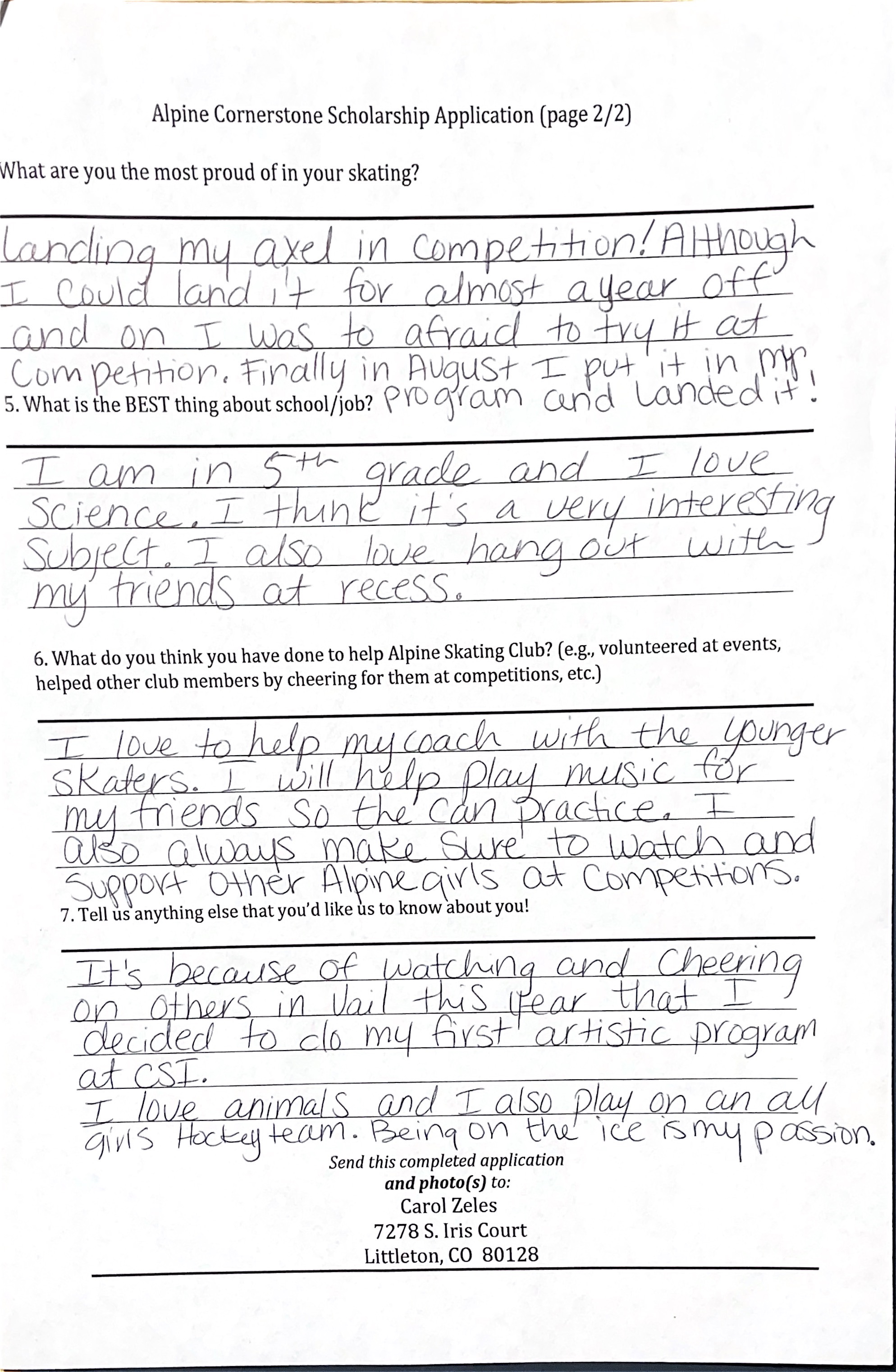 Alpine Scholarship Recipients ($250)
